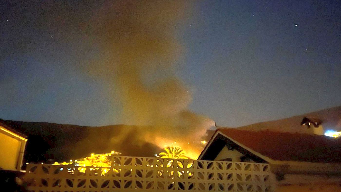 På filmklipp Canariajournalen har fått tilsendt fra vitner til brannen, vises høye flammer sentralt i bygda i nattemørket, og det kan høres flere kraftige smell.