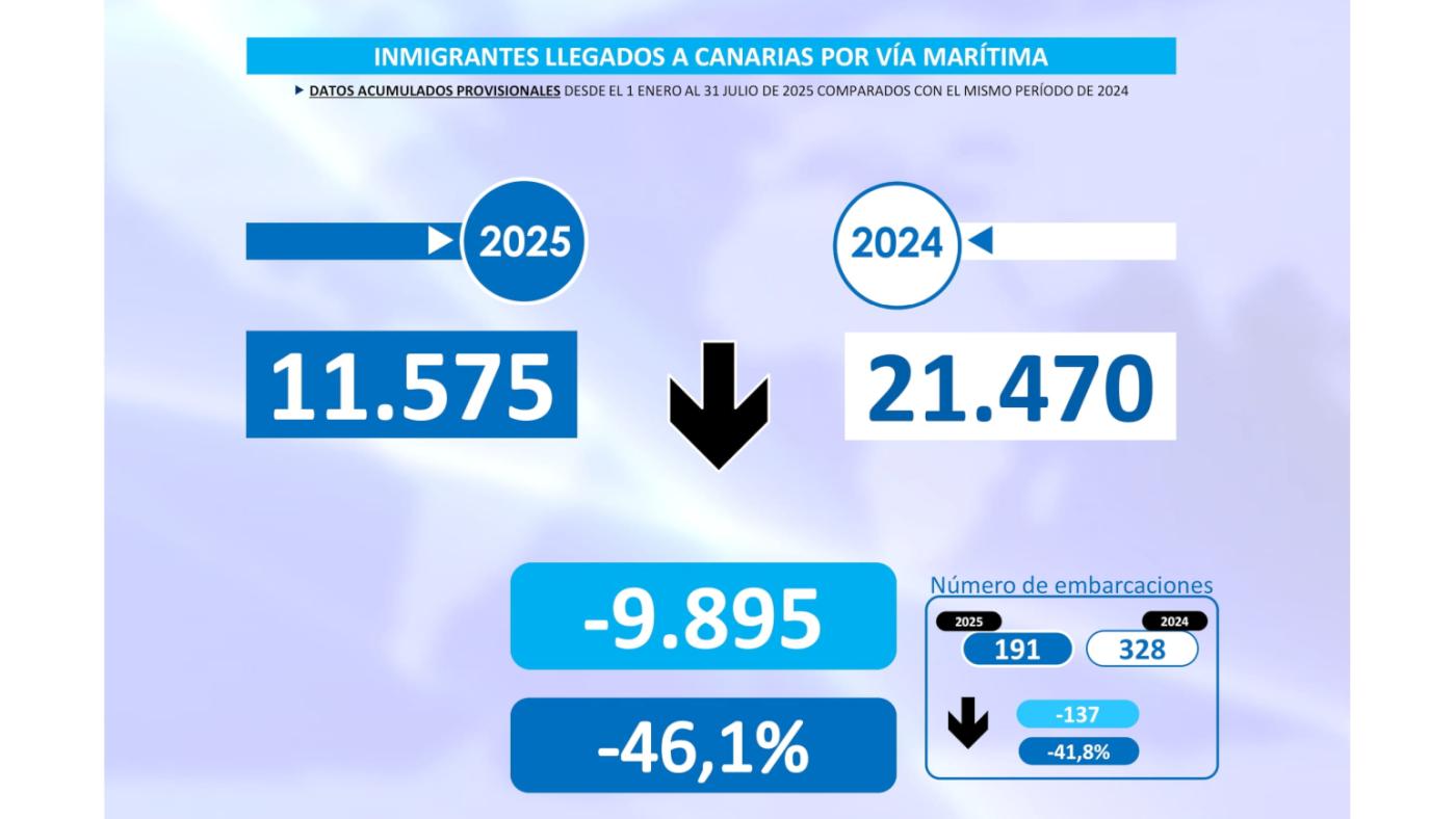Under de första sju månaderna av året anlände 11 575 flyktingar och andra migranter till Kanarieöarna i små båtar som avgick från Afrika.