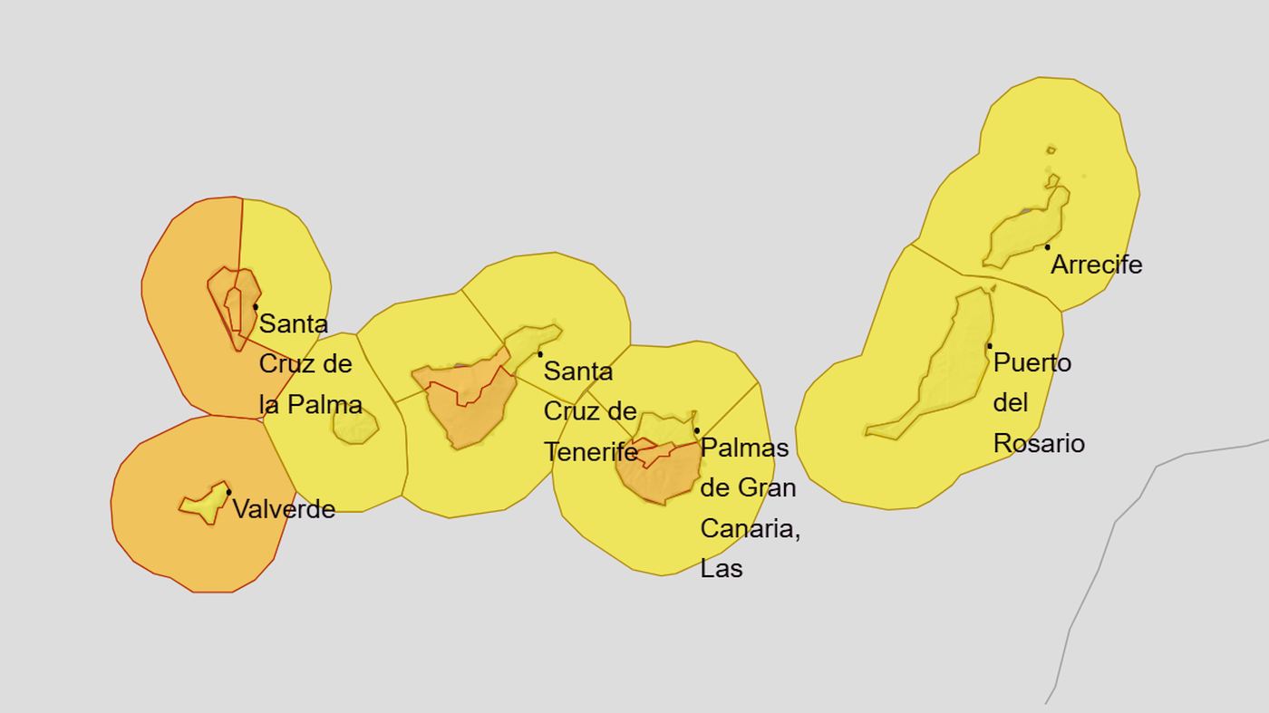 Det är Gran Canaria, Teneriffa, La Gomera, La Palma och El Hierro som får det värsta ovädret, enligt väderprognosen och varningarna. Orange varning från Spaniens nationella meteorologiska institut, Aemet, för regn är från och med toersdagen aktiv på Gran Canaria, Tenerife och La Palma, och gul på alla de andra öarna.